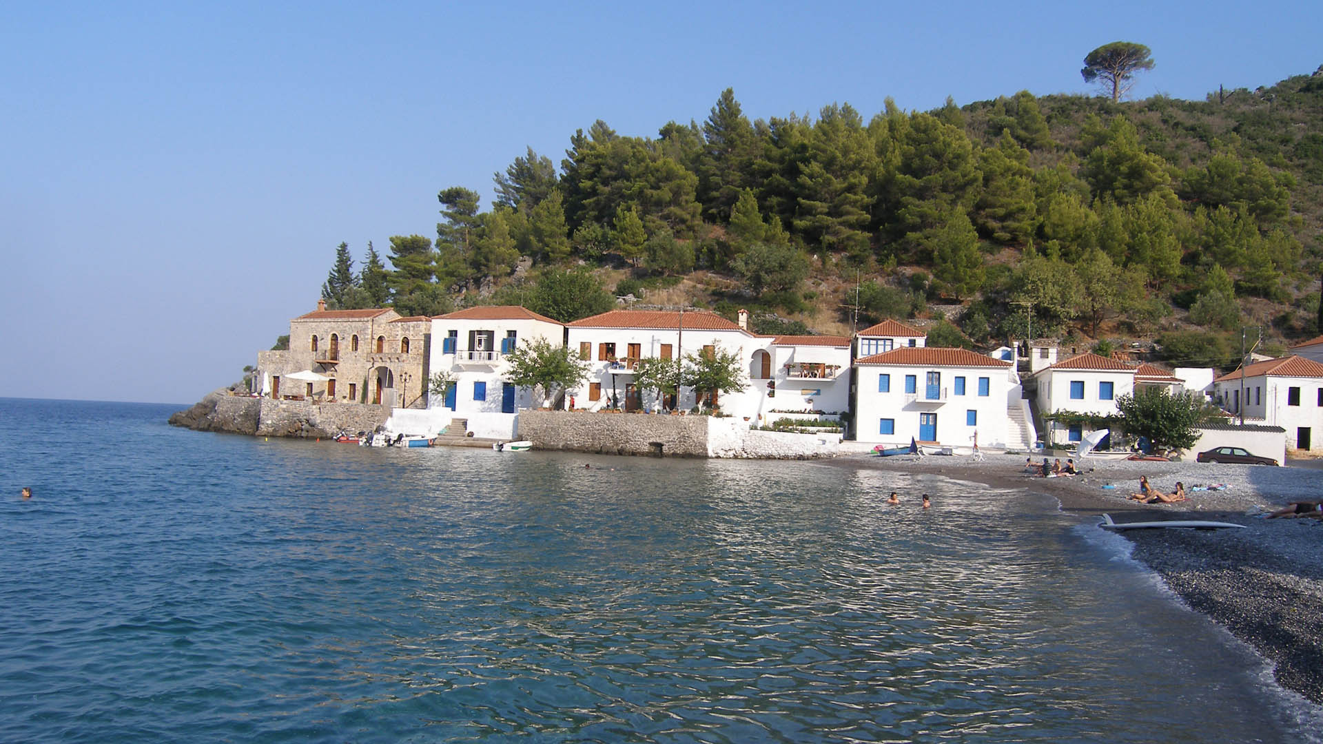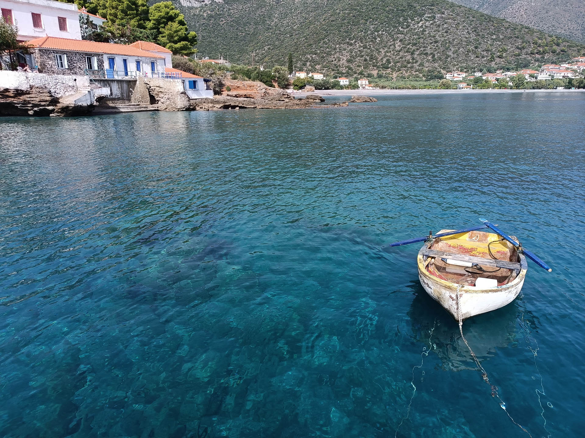 Kyparissi is the kind of holiday place that, if you know about it, you can only tell your closest friends about it because you are afraid of spoiling it. But it would be a hard place to spoil just because of the difficulties in getting here.