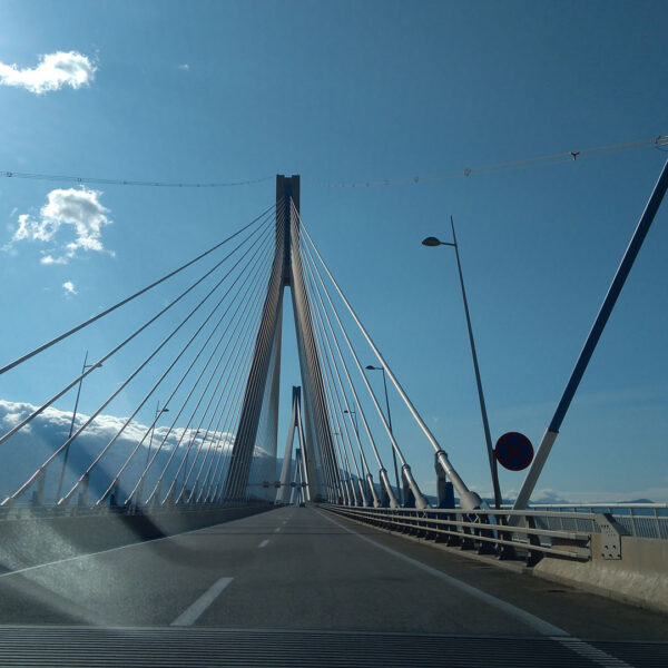 Our target for the late afternoon is to reach Delphi by crossing the amazing Rion Bridge, which is one of the world’s longest multi-span cable-stayed bridges and the longest of the fully suspended type. It crosses the Gulf of Corinth, linking the Peloponnese peninsula to mainland Greece by road.