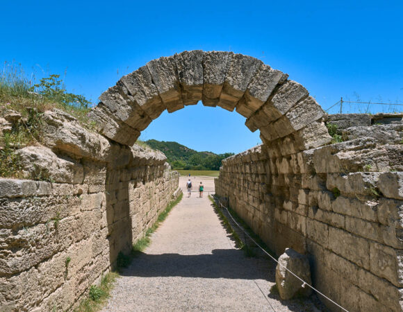 Breakfast and an early start for a long day with two UNESCO World Heritage sites to visit. But first, a quick stop at Sparta to photograph the statue of King Leonidas of the famous 300. Then, a 1h.30′ drive to ancient OLYMPIA to walk through the impressive ruins of the area where athletes trained and ran in the old stadium, just as ancient Olympians did after victory 3,000 years ago. Olympia hosted the original Olympic Games, founded in the 8th century B.C. Its extensive ruins include athletic training areas, a stadium, and temples dedicated to the gods Hera and Zeus.
