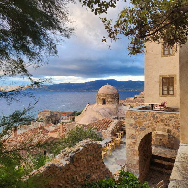 Late afternoon and evening are dedicated to MONEMVASIA, where you will spend the night (if you book early enough to secure one of the great guesthouses of your choice), enjoying the atmospheric castle town, the views of the castle, and the striking blue water, plus food and drink. If you don’t make a last-minute booking overnight, you will be inside the atmospheric Monemvasia castle town.