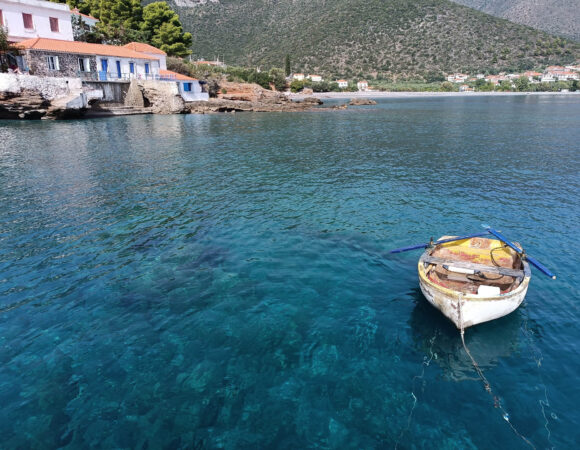 It is a secluded paradise backed by the craggy slopes of Mount Parnon and fronted by the cobalt blue of the Myrtoan Sea. There are 3 parts to Kyparissi. The mountainous Vrisi village, about 100 meters above the level of the sea, is the first one that you meet as you descend from the winding road of Parnonas. Paralia (beach in Greek) is the one that gathers the lion’s share of visitors. Lastly, there is the Metropolis, the last but not least interesting part of the village that overlooks its most beautiful beach.