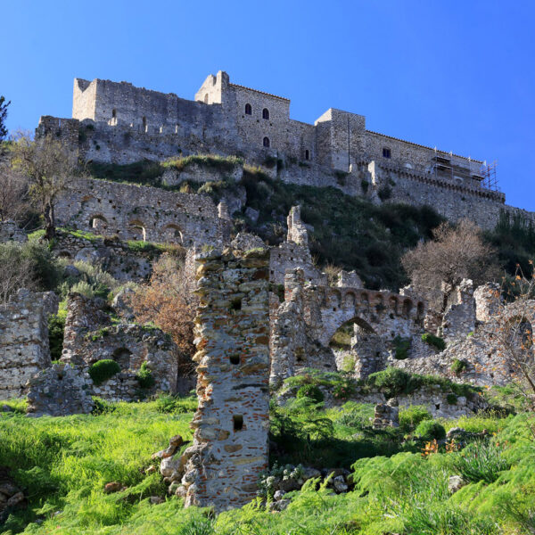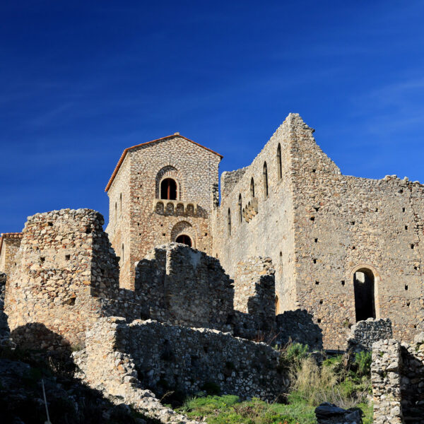 The Mystras Byzantine ruins are one of the best archaeological sites you can see in the area. Be the knight or princess of your childhood fairytales in the Byzantine town of Mystras. Wander around the castle city and sense through the silence the city’s sheer grandeur: the Palace of the Despots, the Houses of Laskaris and Frangopoulos, the beautiful Cathedral of Saint Dimitrios, and the impressive Monasteries of Our Lady Pantanassa, and of Our Lady Perivleptos.